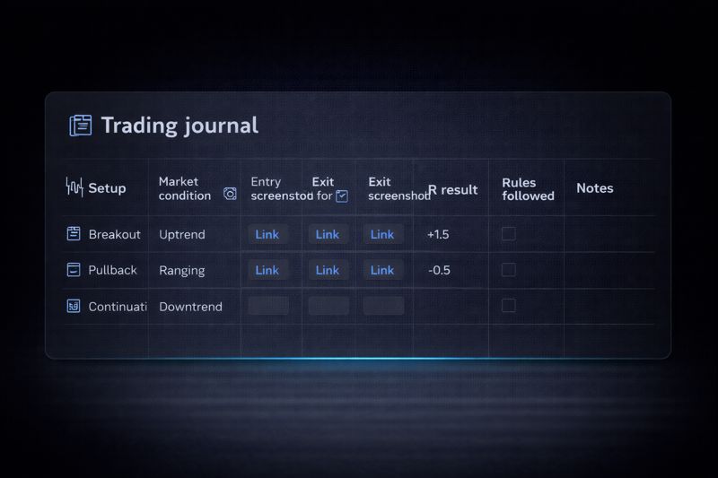 You trade a major FX pair or two during one session. You only take your one setup. You risk a fixed amount per trade. You stop trading after -2R (or whatever your rule is). You journal every trade in under 2 minutes.