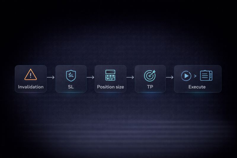 You place the stop where you’re wrong. You size the position to match your risk rule. You place take profit. Then you execute.